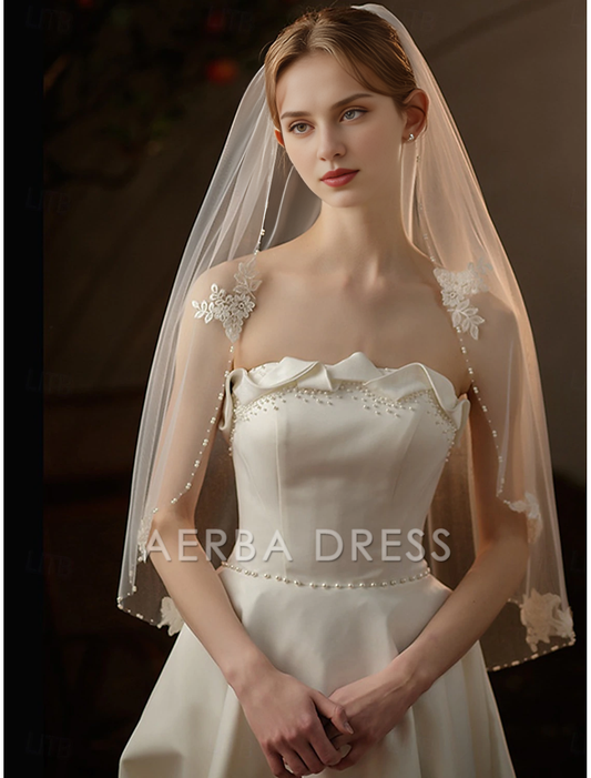 Aerba Dress High Quality Two-tier Pearls Wedding Veil Fingertip Veils Faux Pearl 84.65 in (215cm) Tulle