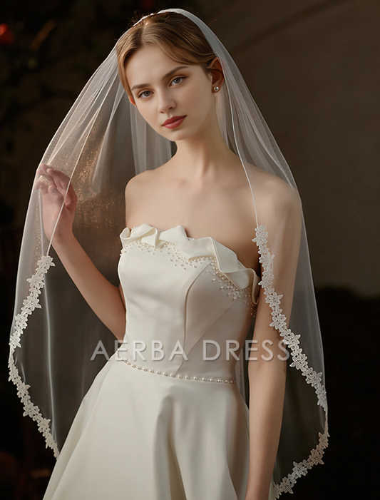 Aerba Dress High Quality One-tier Lace Sweet Wedding Veil Fingertip Veils Fashion Pure Color Tulle Veil