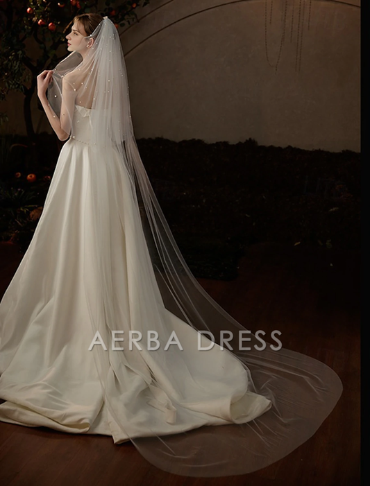 Aerba Dress High Quality One-tier Comtemporary Stylish Wedding Veil Cathedral Veils with Faux Pearl Youthful Charming Tulle Veil