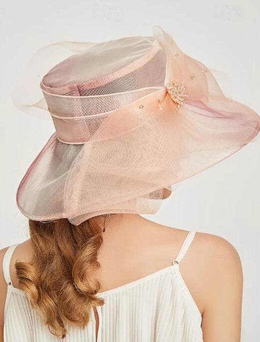 AerbaDress Fascinators Kentucky Derby Hat Headwear Organza Bucket Hat Floppy Hat Sun Hat Holiday Cocktail Elegant Vintage With Rhinestone Cap Headpiece Headwear