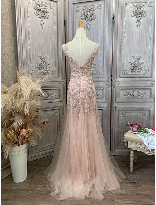 Prom Dresses Dress Party Wear Sleeveless V Neck Tulle with Appliques