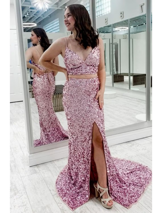 Prom Dresses Sparkle Shine Dress Party Wear Sleeveless Strap Sequined Backless with Sequin Slit
