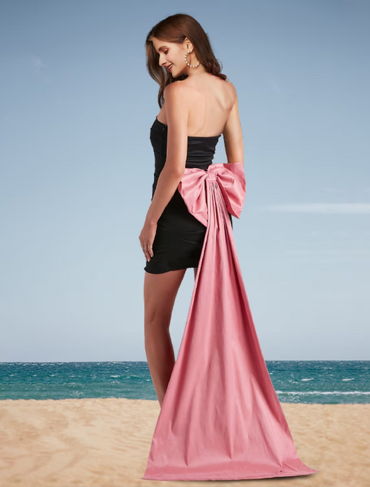 Prom Dresses Bodycon Dress Cocktail Party Short Mini Sleeveless Strapless Spandex with Bow(s) Ruched