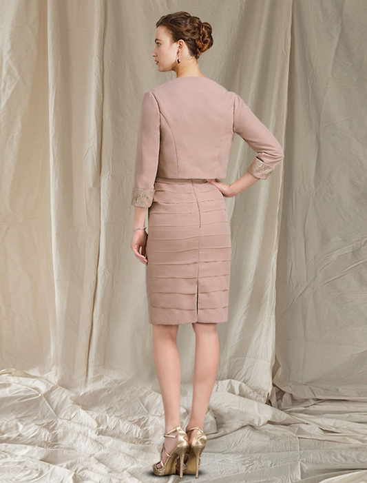 Two Piece Mother of the Bride Dress Church Elegant Knee Length Chiffon Short Sleeve Wrap Included with Tier