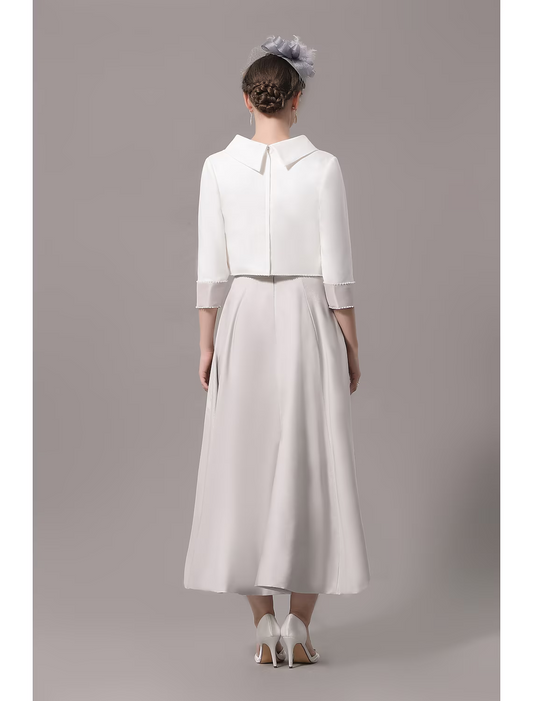 Two Piece Mother of the Bride Dress Church Elegant Ankle Length Stretch Satin Sleeve with Bow(s)