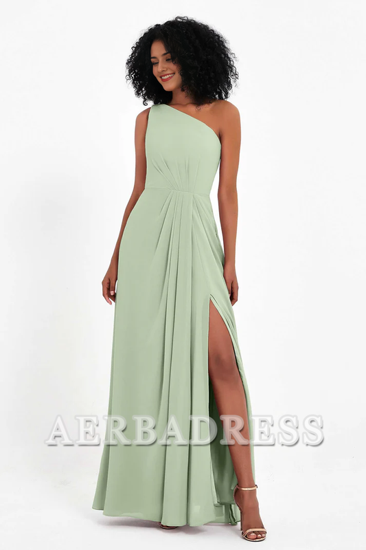 Aerba Dress Bridesmaid Dresses Chiffon A-Line One Shoulder Sleeveless Side Fork Exquisite Simple Dresses Wedding Guest Dresses
