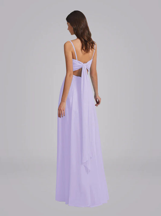 Spaghetti Strap Tie Back Long Chiffon Bridesmaid Dresses