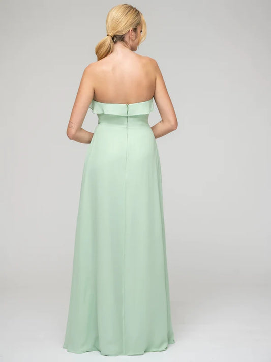 A Line Chiffon Strapless Bridesmaid Dresses With Ruffles