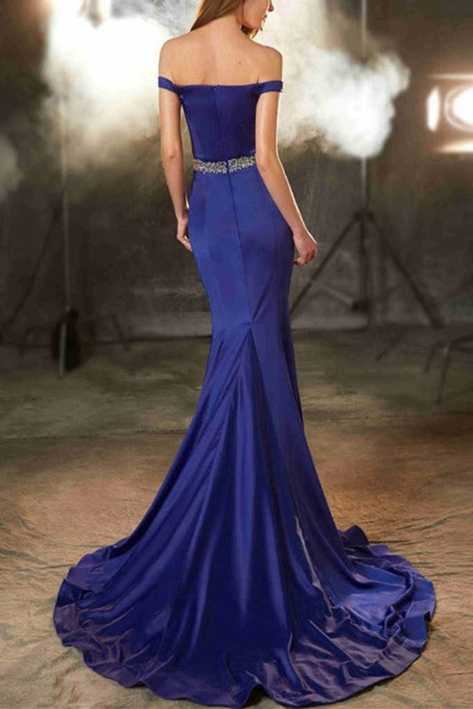 AerbaDress Prom Evening Dresses Off The Shoulder Mermaid Satin Sweep Train