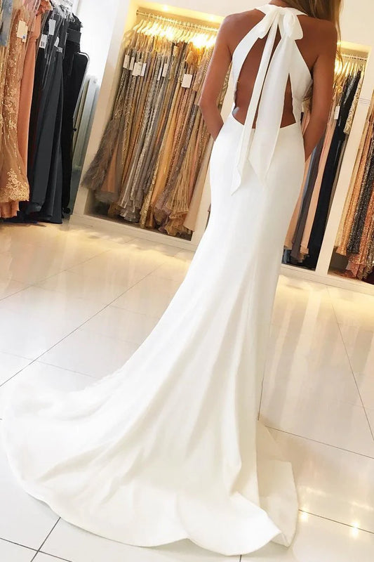 AerbaDress Mermaid Prom Evening Dresses Halter Open Back Satin With Slit