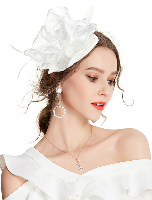 AerbaDress White Wedding Fascinator Tulle Beaded Organza Fascinators Hats Headwear Clip Vintage Elegant with Feathers Fur Flower 1 Piece Kentucky Derby Horse Race Tea Party Ladies Day Headpiece