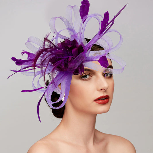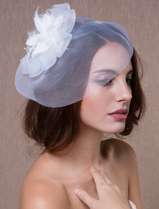 AerbaDress Fascinators Headpiece Tulle Tea Party Horse Race Ladies Day Elegant Retro With Feather Flower Headpiece Headwear