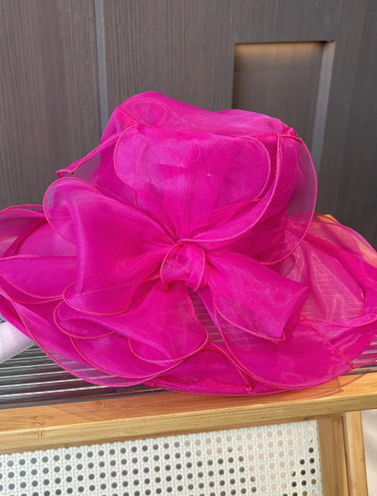 AerbaDress Fascinators Hats Headwear Organza Bucket Hat Floppy Hat Sun Hat Casual Holiday Elegant Vintage With Flower Pure Color Headpiece Headwear