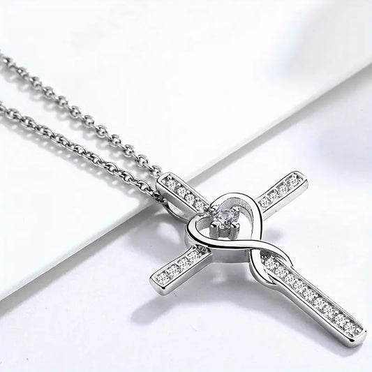 Aerba 2PCS 925 Sterling Silver Women's Chain Necklace With Cross Pendant, Hypoallergenic Necklace Gift Fashion Cross Religious Belief Inlaid Zircon Pendant