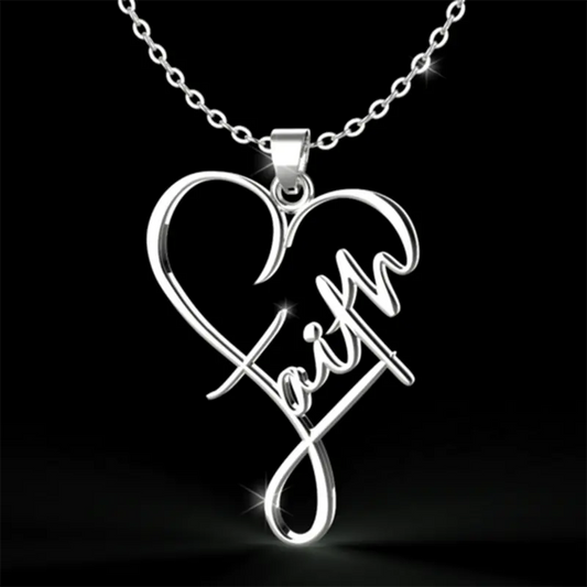 Aerba Heart-Shaped Stainless Steel Pendant Necklace Elegant Style Letter Charm Jewelry Faith Accessories For Women & Men