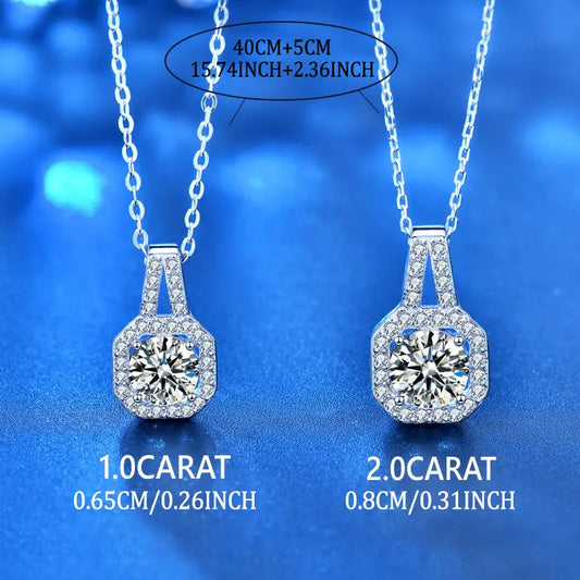 Aerba 925 Sterling Silver 1ct/2ct Moissanite Square Cut Pendant Necklace, Elegant And Cute Style Wedding Jewelry For Birthday & Mother's Day Gifts For Women, With Gift Box