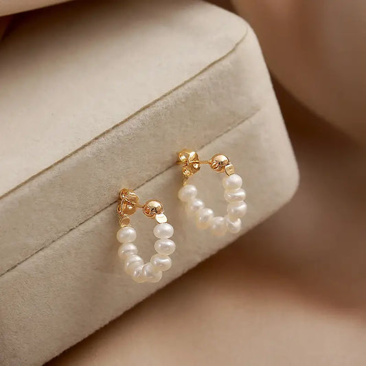 Aerba 1 Pair S925 Sterling Silver Hoop Earrings, Fashionable Korean Style, Simple Faux Pearl Dangle Earrings for Women, Elegant Light Luxury Bead Design, Chic Personalized Ear Jewelry, 4.8g/0.17oz