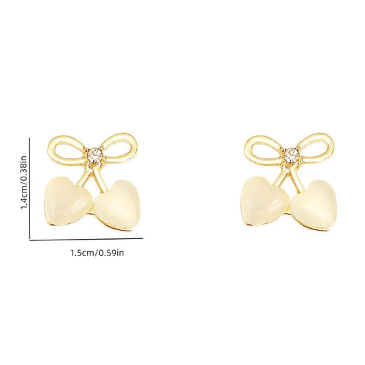 Aerba 2pcs Hollow Bow Heart Cat Eye Stone Stud Earrings