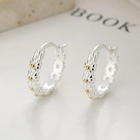 Aerba 1 Pair Exquisite Sterling Silver 925 Daisy Hoop Earrings - Bohemian Chic, Fresh Floral Design, Small and Delicate, Personalized Fashion Ear Accessories - Ideal Birthday Gift for Grandma, Mom, Girlfriend, and Perfect for Everyday Wear