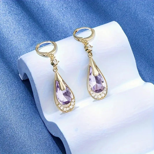 Aerba 1pair Exquisite And Stylish Purple Waterdrop Pendant Earrings, Perfect Gift For A Girl's Birthday, Christmas, And Anniversaries