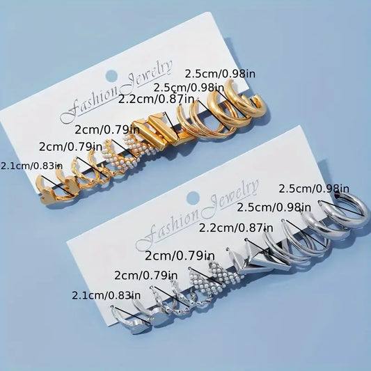 Aerba Set of 12 Pairs of Elegant and Luxurious Heart Shaped Pearl Earrings - Stylish and sophisticated women's jewellery - Delicate design with glamorous embellishments - Ideal gift for special occasions Pe
