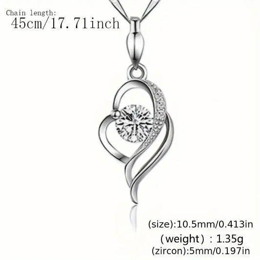 Aerba 925 Sterling Silver Platinum Plated Heart Pendant Necklace - Unique Minimalist Design, High-End, Versatile, and Durable - Perfect for Everyday Wear, Collarbone Chain Accessories, and Thoughtful Gifts for Men and Women