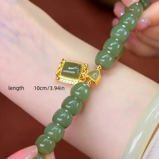 Aerba Elegant Jade Bracelet, Retro Bracelet, Paired With 18K Gold-plated Pendant To Enhance Your Temperament, Elegant And Luxurious Gift, Perfect Holiday Gift For Beautiful Women