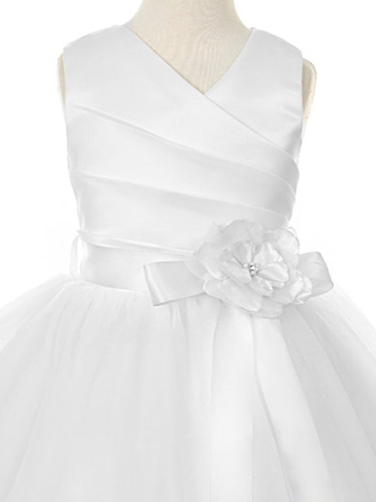 AERBA DRESS Wedding Flower Girl Dresses A Line Pleated Sleeveless V-Neck Tulle Skirt Dress Detachable Sash Flower Princess Dress