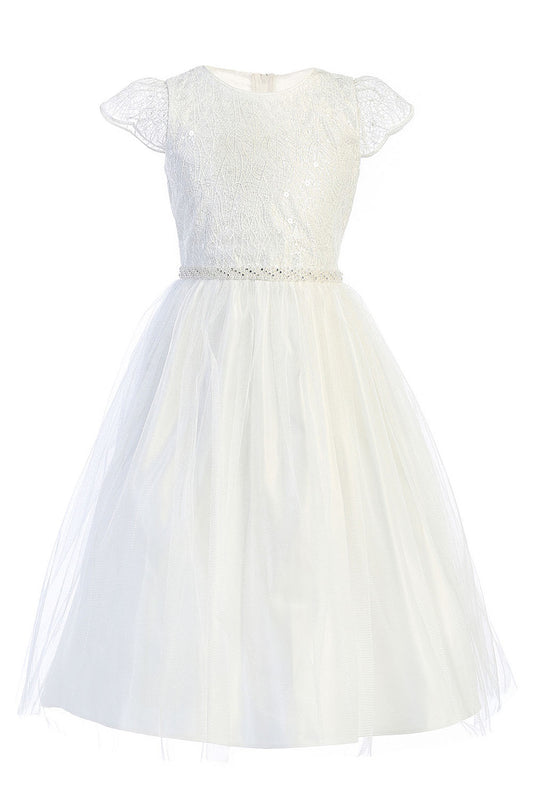 AERBA DRESS Wedding Flower Girl Dresses A Line Cap Sleeves Corded lace with sequin accents Beaded waistline Tulle Princess Dress