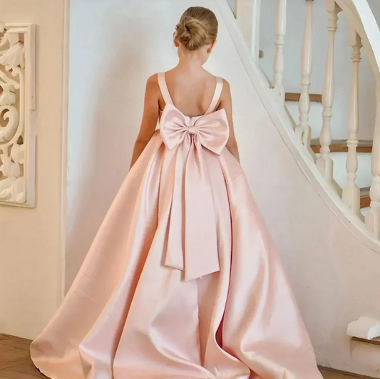 AERBA DRESS Wedding Flower Girl Dresses Sleeveless Bodice Irremovable Bows Lace Princess Dress
