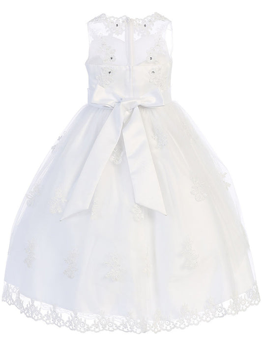 AERBA DRESS Wedding Flower Girl Dresses Sleeveless Sweetheart Illusion Neckline Lace Applique Organza Communion Dress