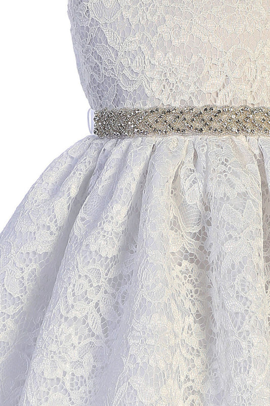 AERBA DRESS Wedding Flower Girl Dresses Shoulder Cap Sleeve Corded Lace Dress Rhinestone Belt Girls Princess Dress