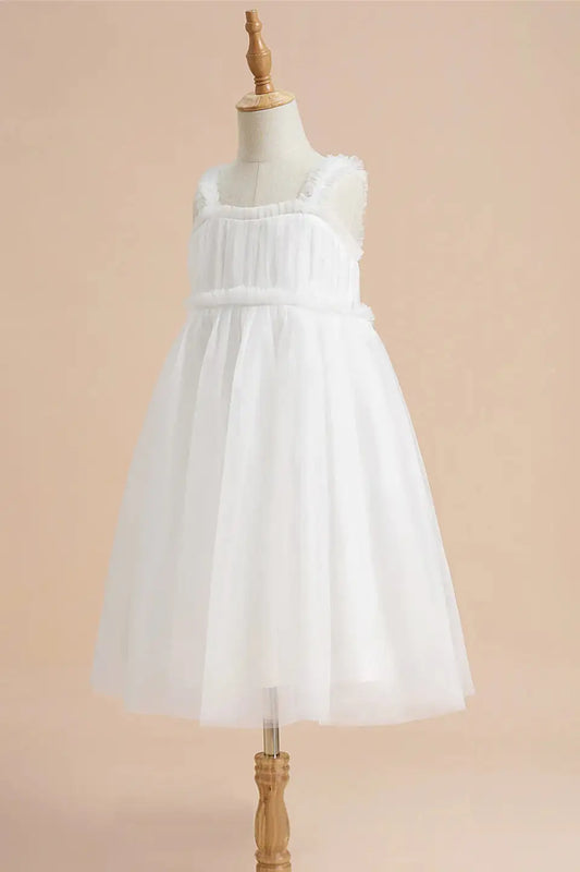 Wedding Flower Girl Dress Elegant A Line Square Neck Ruffles Pleated Cute Girl Communion Formal Dress Princess Dress