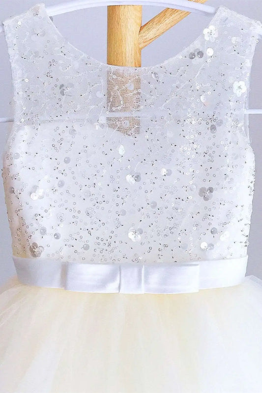 Wedding Flower Girl Dress Sparkle A Line Round Neck Sleeveless V-Back BowSequined Cute Girl Communion Formal Dress Princess Dress