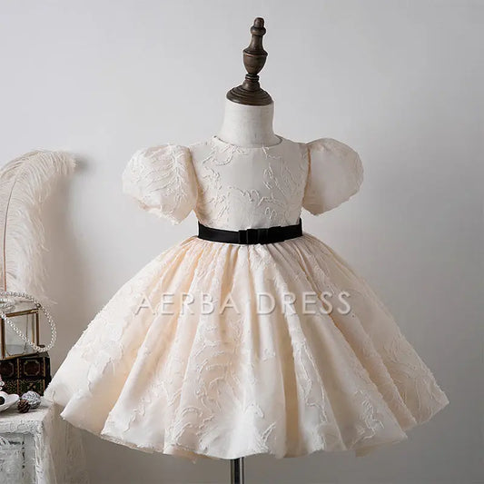 Wedding Flower Girl Dress Fashion A Line Round Neck Puff Sleeve Girl Communion Formal Dress One-Year-Old Birthday Party Dress Cute Girl Princess Dress