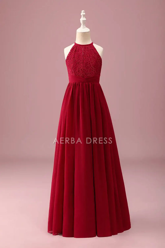 Junior Bridesmaid Dress A-Line Halter Sleeveless Lace Floral Back Hollow Out Fashion Girl Formal Dress
