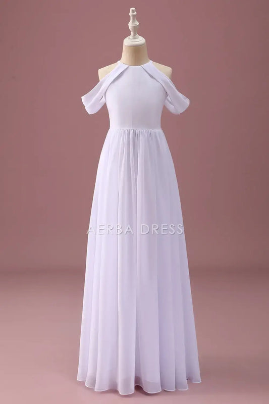 Junior Bridesmaid Dress A-Line Off The Shoulder Sleeveless Backless Pleated Elegant Long Girl Formal Dress