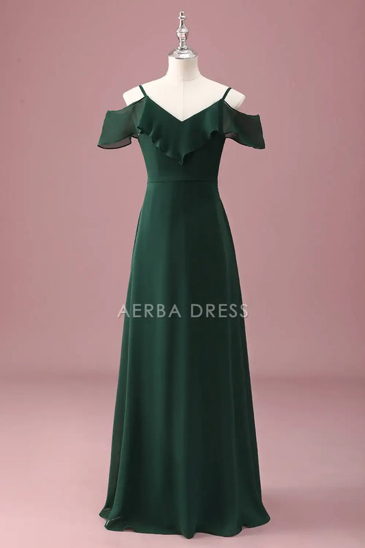 Junior Bridesmaid Dress A Line V Neck Spaghetti Strap Off The Shoulder Ruffles Elegant Long Girl Formal Dress