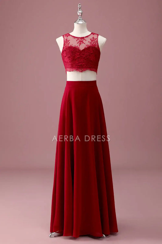Junior Bridesmaid Dress A Line Round Neck Two Piece Set Lace Crop Top Fashion Long Girl Formal Dress