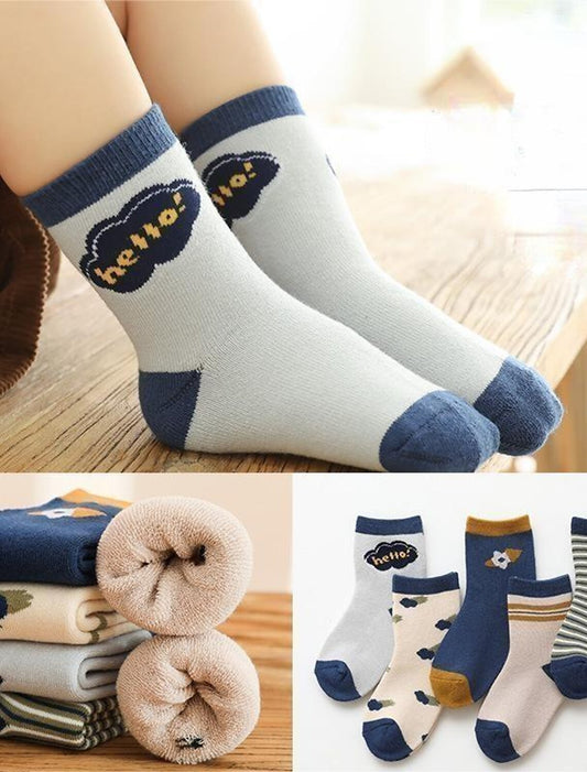 Aerba Kids Unisex Blue Print Spring Fall Sweet Casual 1-12 Years 5 Pairs Socks