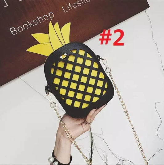Aerba Leather Handbag For Girls Lovely Pineapple Girl Messenger Bag With Chain Hollow Out PU Women Bag Mini Purse