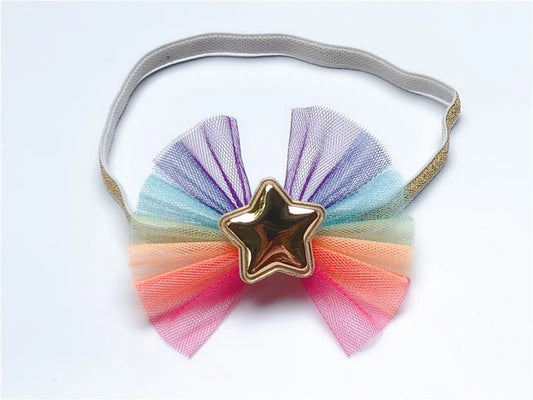 Aerba Boutique ins 15pcs Fashion Cute Glossy PU Star Bow Headbands Rainbow Mesh Bowknot Glitter Soft Hairbands Princess