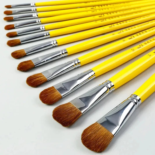 Aerba Watercolor Pens School Students 6Pcs Weasel Hair Round Head Paint Brush Set Even/Odd Number Gouache Oil Painting Solid Wood Yellow Handle Paint Brushes