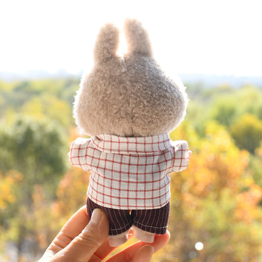 Handmade Labubu set can be paired with Labubu V1 Macaron and V2 seats with 17cm hanging accessories Labubu fabric clothing includes checkered shirts and shorts and Labubu doll clothing accessories (excluding dolls)