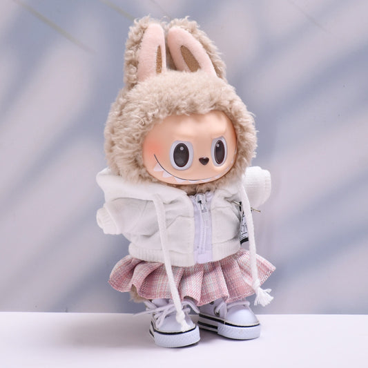 Handmade Labubu set can be paired with Labubu V1 Macaron and V2 seats white hoodie jacket+pink JK skirt vinyl LABUBU baby outfit (excluding dolls)
