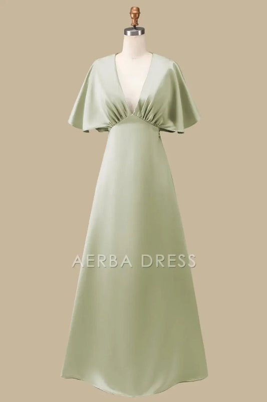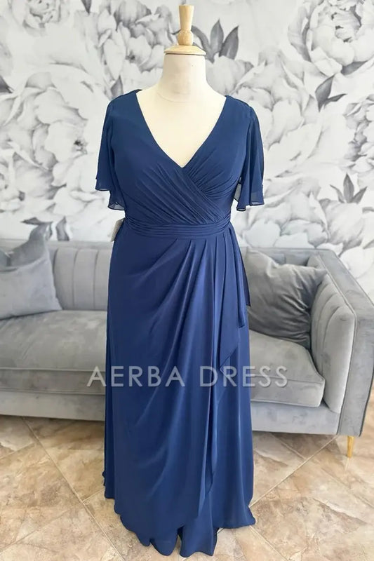 AERBA DRESS Mother of The Bride Dress Chiffon V Neck Flutter Sleeves Surplice Ruffle Long Elegant Dress Wedding Guests Dresses