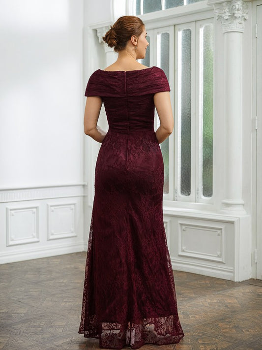 Sheath/Column Lace Ruched V-neck Short Sleeves Floor-Length Mother of the Bride Dresses