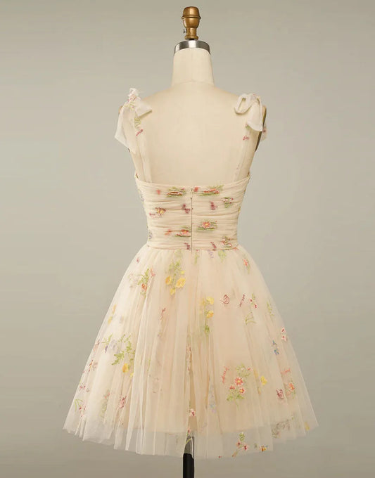 AerbaDress A-Line Spaghetti Straps Corset Back Tulle Dress With Appliques