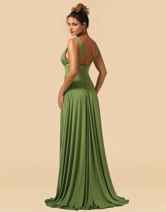 AerbaDress Bridesmaid Dress A-Line Deep V-neck Floor Length Spandex with Split