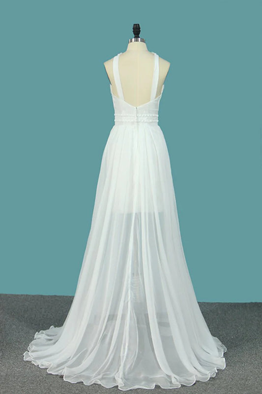 AerbaDress Mermaid Wedding Guest Dresses Scoop Chiffon With Beads And Slit